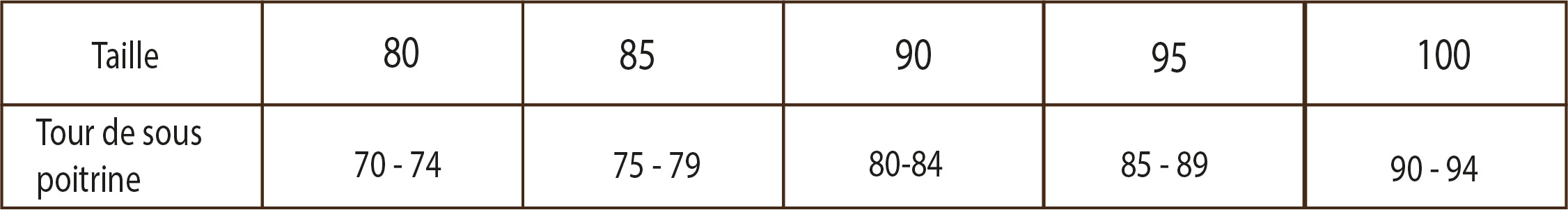 Mesurez votre tour de taille: la taille correspond à l’endroit de votre buste le plus fin.